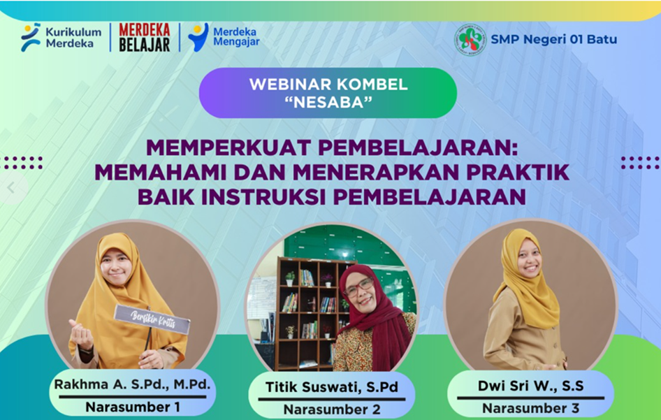 Senin (13/5/2024) Komunitas Belajar (Kombel) Nesaba di SMP Negeri 01 Batu kembali menyelenggarakan kegiatan Webinar bertajuk Instruksi Pembelajaran. Kegiatan ini menghadirkan 3 orang narasumber dari MGMPS Seni Budaya, TIK, dan…