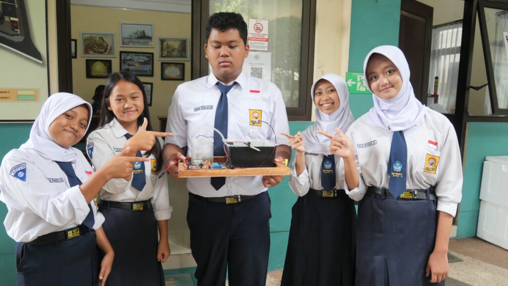 “Kami ingin membuat alat yang bermanfaat untuk lingkungan. Yang satu untuk mendukung ketahanan pangan, dan yang satunya lagi untuk mencegah kebakaran sejak dini,” ujar Azzahra Naiya Amalia saat menjelaskan hasil karyanya.